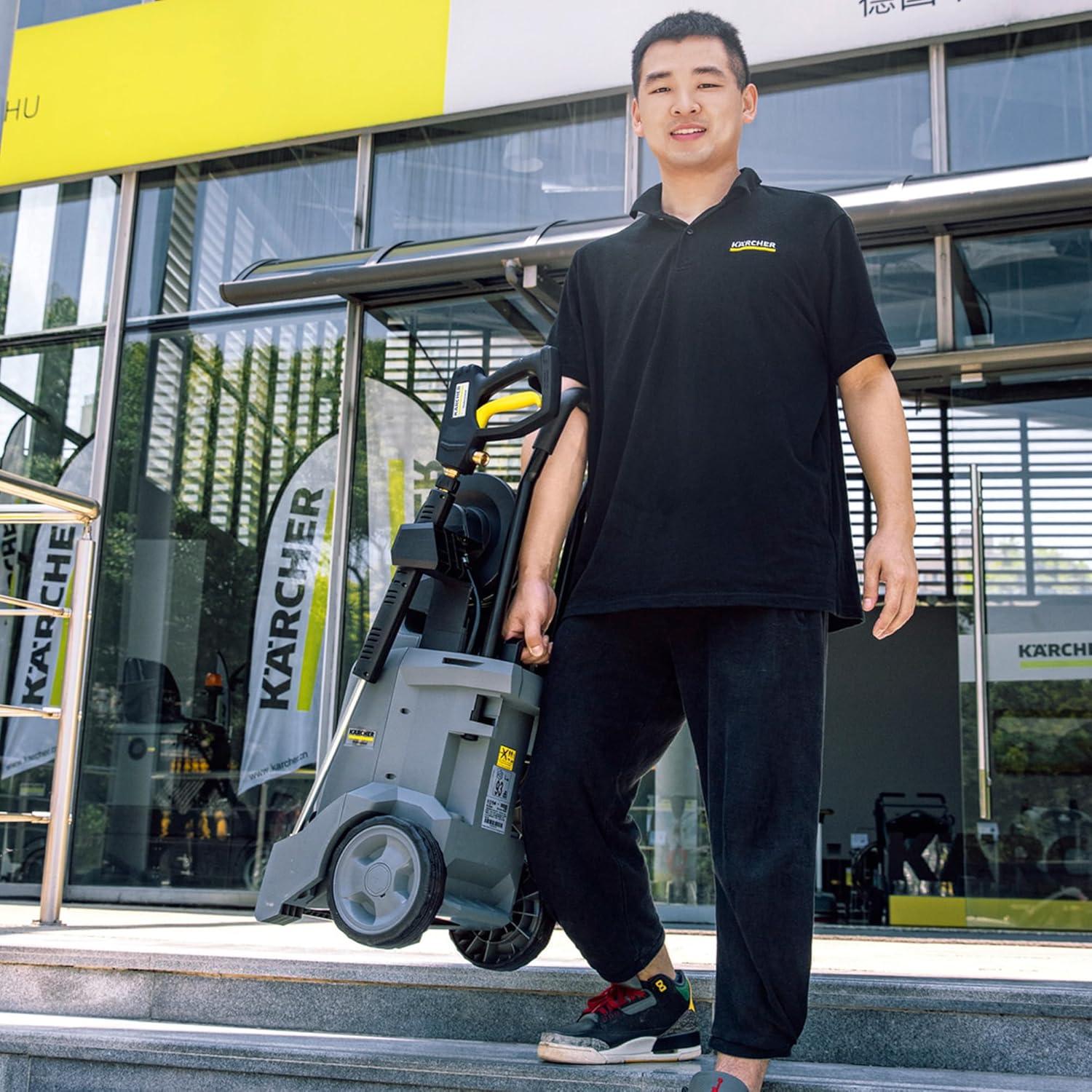 Ergonomic, mobile, powerful and compact: The HD 4/8 X Classic pressure washer impresses with its durable and reliable components such as the 3-piston axial pump and an induction motor, as well as its compact and robust design. The automatic pressure relief system effectively protects the hydraulic components, ensuring a long lifetime with very low repair and maintenance costs. The reduced trigger pull on the gun allows for long, fatigue-free periods of work. The ergonomic and user-friendly HD 4/8 X Classic is extremely easy to use and, thanks to its integrated hose reel and retractable pull handle, ensures a high degree of user comfort. With a working pressure of 1150 PSI, a water volume of 1.7 GPM, and stable wheels for easy transportation and high mobility at the site of use, the HD 4/8 X Classic high pressure cleaner is suitable for diverse applications, such as in the building industry, construction, or occasional vehicle cleaning.