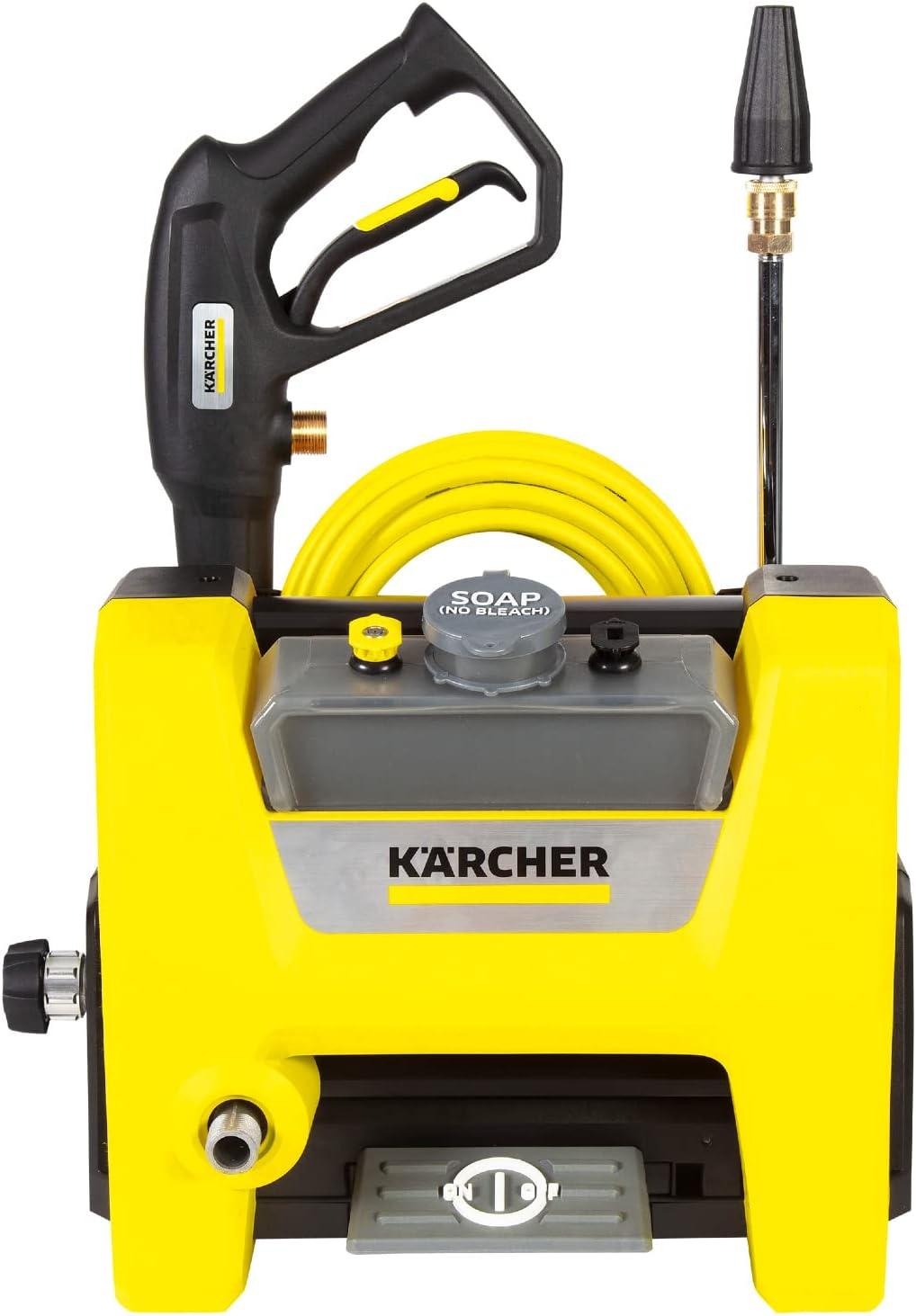 The Kärcher K1700 Cube is a compact electric pressure washer ideal for everyday cleaning. With a 1700 PSI CETA™ certified TruPressure™ output and a GPM of 1.2, this power washer is easy to use for any homeowner and perfect for maintaining your home's exterior. The kit includes three different spray nozzles with a universal quick-connect fitting: a 15° nozzle for regular cleaning tasks, a turbo nozzle for intense cleaning power, and a 65° soap nozzle for applying detergent and achieving a sparkling finish. The integrated detergent tank on the top of the unit makes it easy to apply your favorite pressure washer detergents. For added convenience, the detergent tank is removable to fill and clean when needed. Thanks to the three different nozzles, the K1700 Cube can be used to clean cars, patios, fencing, decks, and much more. With a size of only 15.1 x 12.6 x 11.8 in. and a weight of around 16.3 lbs, the K1700 Cube is perfect for anyone with limited storage space and who seeks a lightweight unit that is easy to carry around. Its compact design makes it a breeze to store in your garage, shed, or even a small shelf. The integrated storage container on the back of the unit keeps the trigger gun, hose, and spray wand neatly stored away while not in use, ensuring everything stays organized. The nozzles can be secured on the detergent tank when not in use, so you never misplace one ever again. No tools are needed for the assembly of the K1700 Cube, so you can start cleaning as soon as it arrives. The on/off foot switch provides easy power control, allowing you to turn the pressure washer on and off with a simple tap of your foot. Water flow is controlled separately through the trigger gun. This set includes the K1700 Cube, a pressure washer gun, a spray wand, a 15° nozzle, a 65° nozzle, a turbo nozzle, an adapter for 3/4″” garden hose, a removable detergent tank, and a M22 18 ft. pressure washer hose