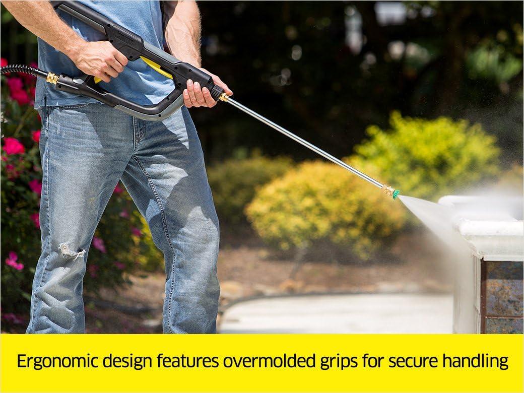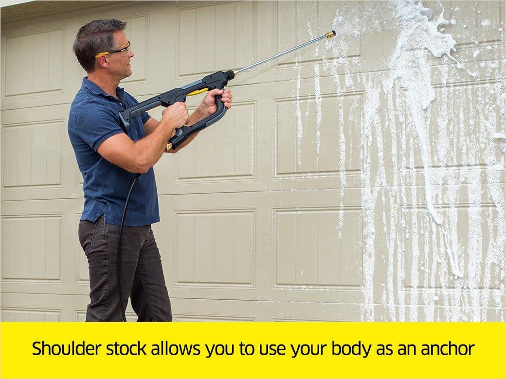 Karcher invented the high-pressure washer & continues to reinvent it again & again. Karcher versa grip trigger gun was designed with dual action triggers, providing multiple ways to spray & enabling you to clean at any angle. The shoulder stock allows you to use your body as an anchor, providing a secure grip while relieving stress from your fingers, hands & wrist. The ergonomic design features over molded grips, providing comfortable & secure handling. Compatible with most gas pressure washers to 4000 PSI. Its fittings easily attach to standard spray wands & high pressure hoses.